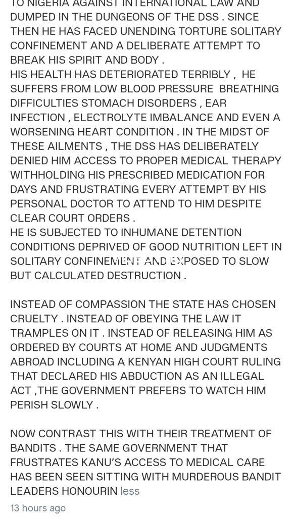 The APC Chieftain made his feelings known on Facebook after actress Rita Edochie went on Instagram to advocate for the detained leader of the Indigenous People of Biafra (IPOB).